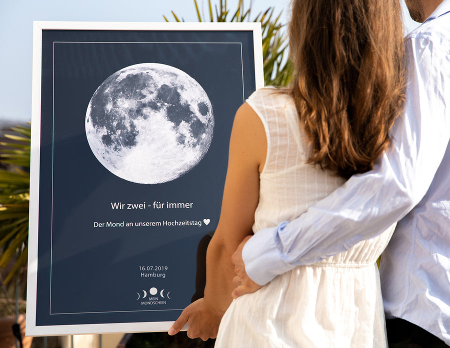 Mit unseren Mondpostern kannst du eine wundervolle Erinnerung an die Traumhochzeit gestalten. Verschenke etwas ganz persönliches von besonderer Bedeutung.