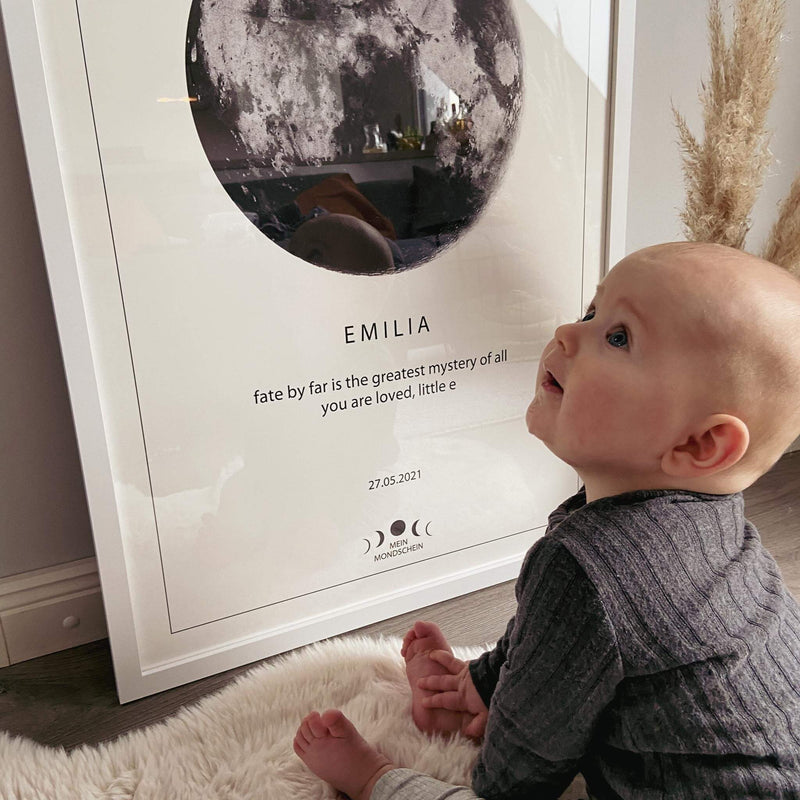 Der Mond hat eine ganz besondere Bedeutung für Mensch und Natur. Ein personalisiertes Mond Poster oder auch ein Mondzeichen Poster sind daher eine perfekte Geschenkidee zur Geburt.